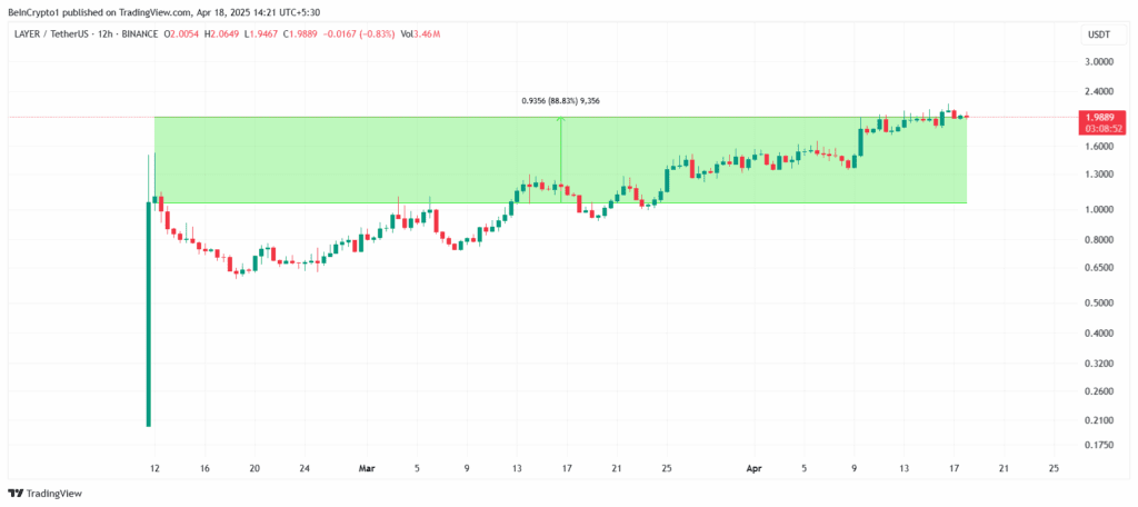 در این میان، توکن سولِیِر (LAYER) از معدود پروژههایی بوده که از زمان عرضه در فوریه (بهمن)، حدود ۸۸ درصد رشد کرده و در حال حاضر نزدیک به ۲ دلار معامله میشود.