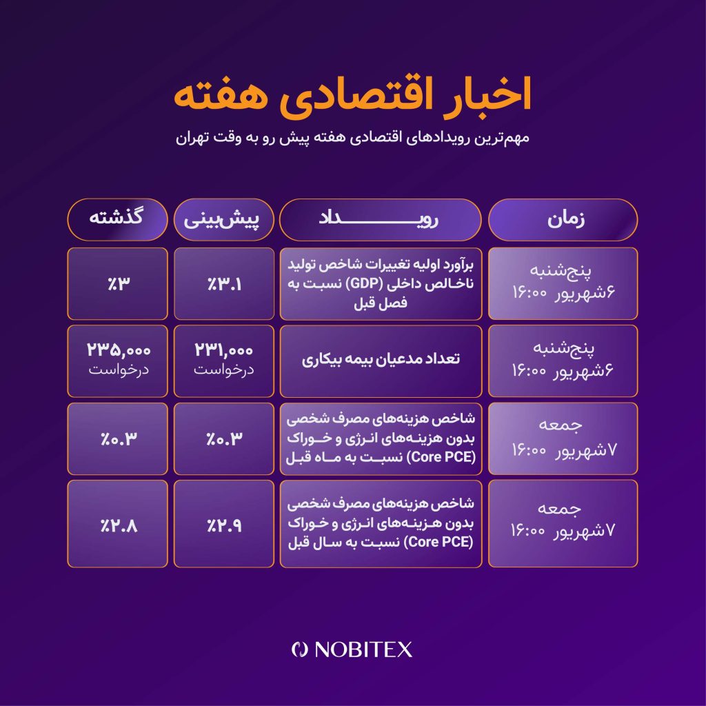 در روز پنجشنبه ۲۸ آگوست (۶ شهریور)، ارز STRIKE از فهرست صرافیهای Upbit و Bithumb حذف خواهد شد. همچنین از همین تاریخ تغییرات مهمی در ساختار توکنومیک ارز DEGEN آغاز میشود که شامل آخرین ایردراپ، توکن آنلاک کامل از خزانه و حرکت به سوی حذف انتشار تورمی است. در همین روز، در ساعت ۱۶:۰۰ به وقت ایران، آمار تولید ناخالص داخلی سهماهه آمریکا با برآورد ۳ درصد در برابر رقم منفی ۰.۵ درصد پیشین منتشر میشود. در همان ساعت نیز دادههای مربوط به تعداد مدعیان اولیه بیمه بیکاری آمریکا اعلام خواهد شد که انتظار میرود به ۲۳۱٬۰۰۰ مورد برسد، در حالی که رقم قبلی ۲۳۵٬۰۰۰ مورد بود.
